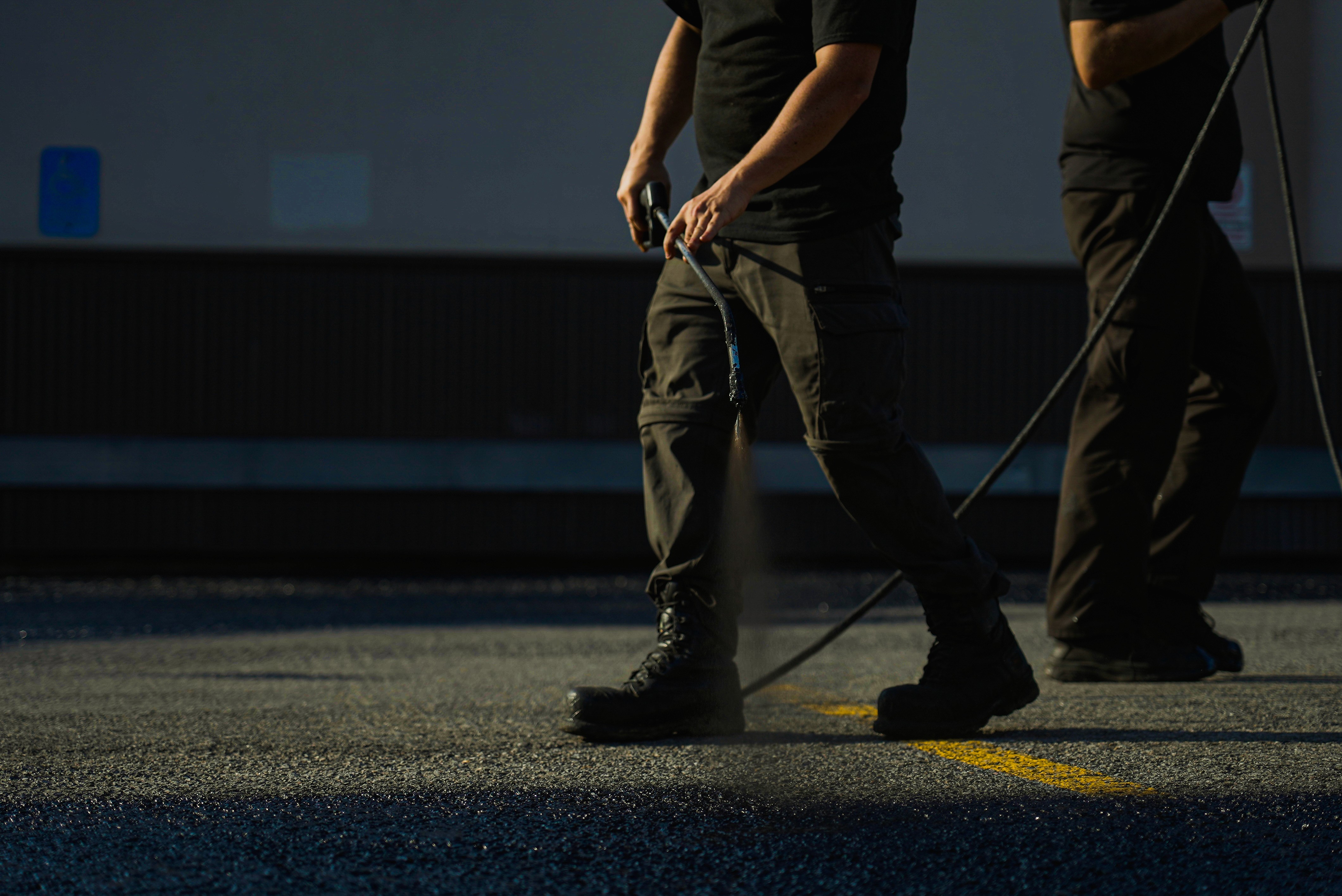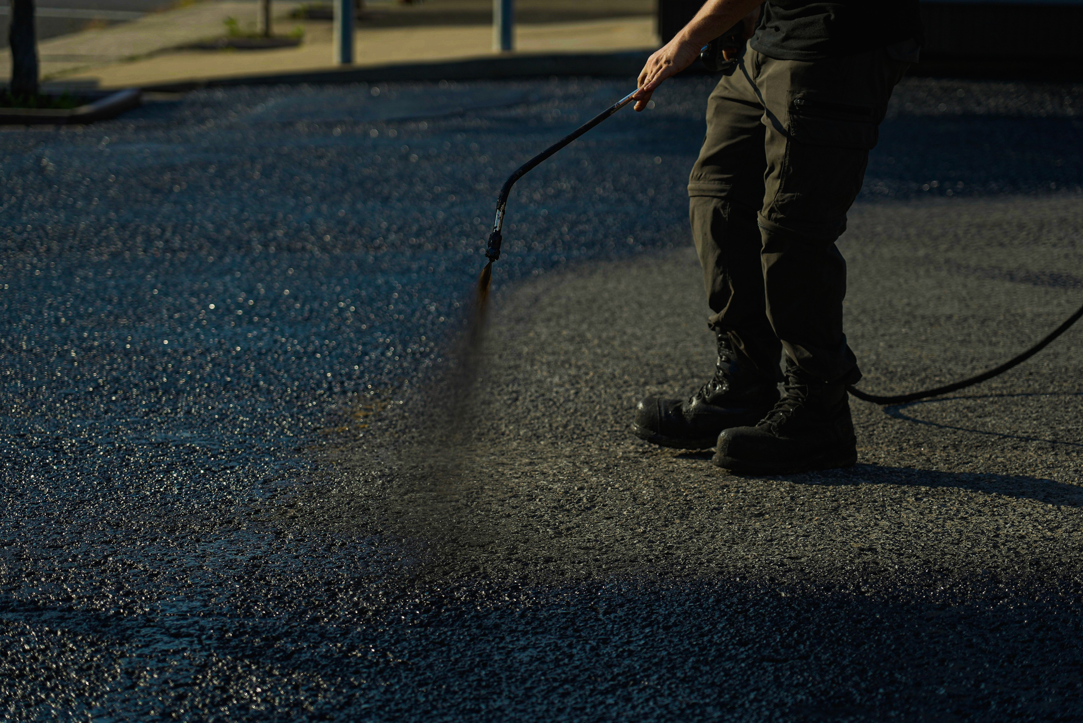 Un bon scellant commence par une préparation rigoureuse de la surface. Nous nettoyons l’asphalte en profondeur pour retirer poussière, résidus et contaminants qui nuiraient à l’adhérence du produit. Nous colmatons ensuite les fissures existantes avant d’appliquer le scellant en couche uniforme. Le produit utilisé est de qualité commerciale, conçu pour résister aux intempéries et aux sels de voirie. Une fois sec (généralement après 24 à 48 heures selon la météo), la surface est prête à être réutilisée.
